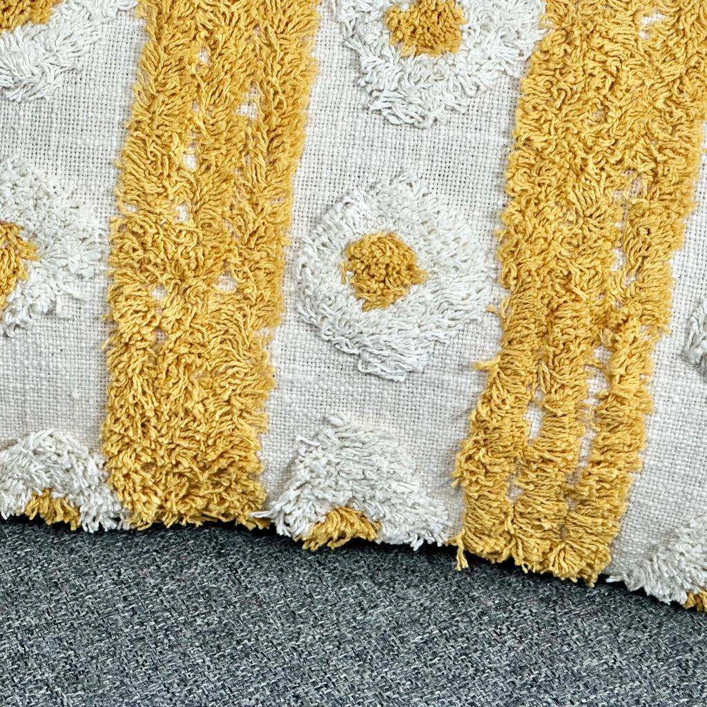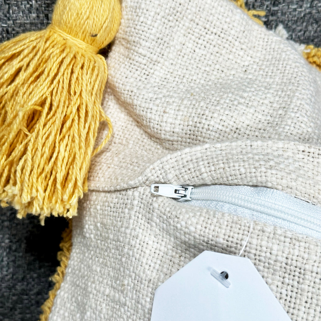 Bringen Sie Stil und Komfort in Ihren Raum mit diesem wunderschönen getufteten Aztekenkissen mit Quasten! Mit großen Quasten, einer rechteckigen Form und einem atemberaubenden aztekischen Zick-Zack-Muster in Senfgelb und Beige ist es das perfekte Akzentstück für jeden Raum. Darüber hinaus sorgt das mitgelieferte Kissen für zusätzlichen kuscheligen Komfort.
